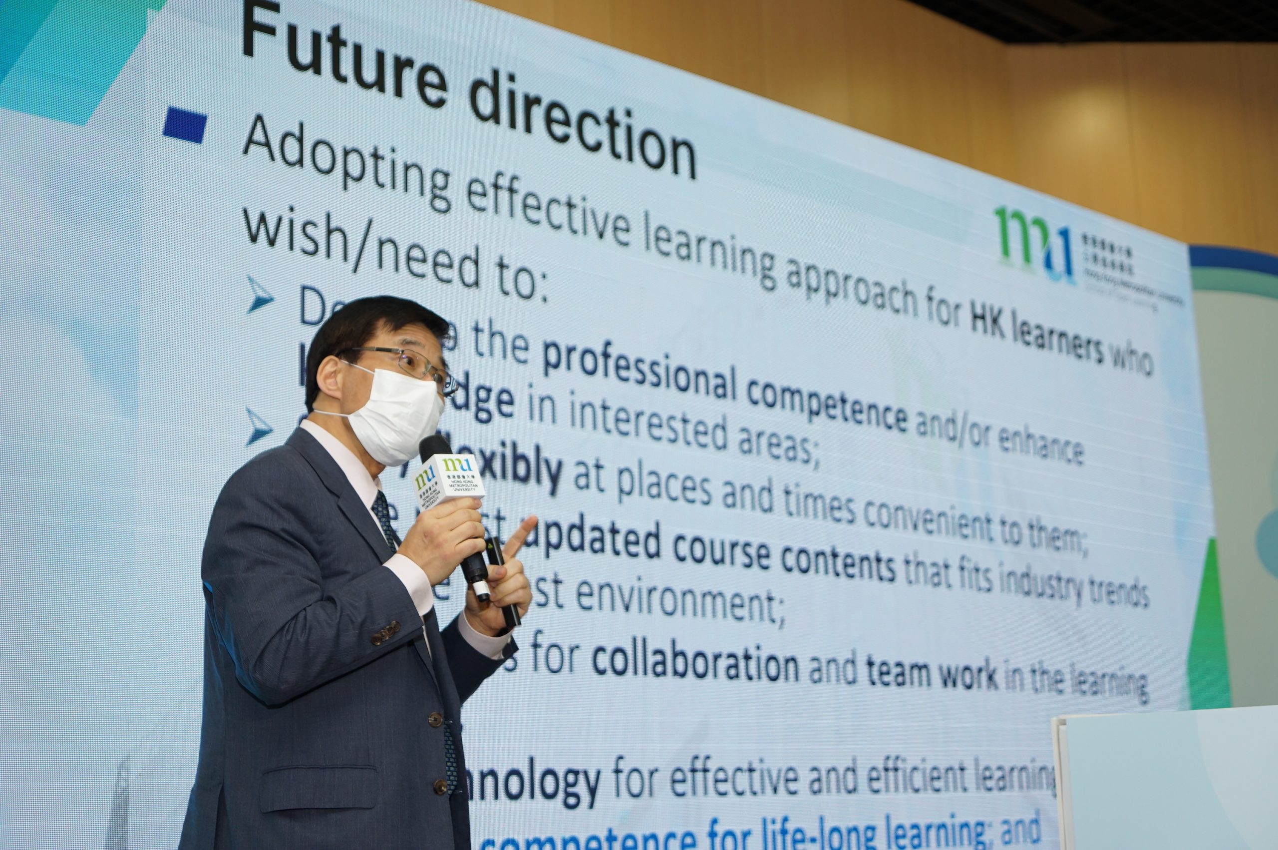 Dean of SOL Dr Li Kam-cheong shared the achievements of HKMU in open learning. He mentioned the University's commitment to fostering innovation in teaching. In addition to developing online learning systems, HKMU makes good use of technology and devices in teaching and learning, he said.