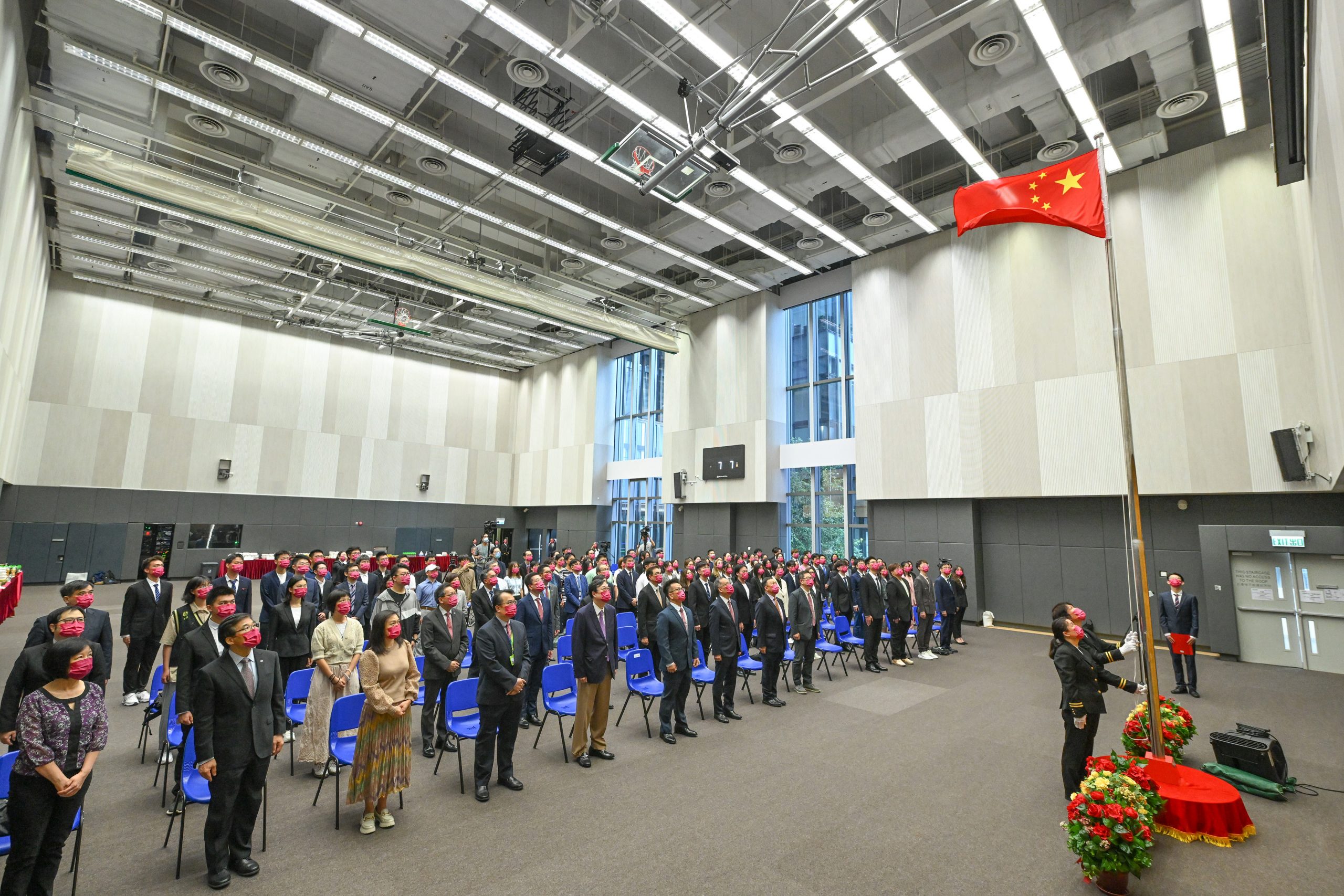 為慶祝中華人民共和國成立73周年,香港都會大學(都大)今早(10月1日)舉行升旗儀式。都大校董會主席、大學管理層、教職員及學生逾百人出席儀式...