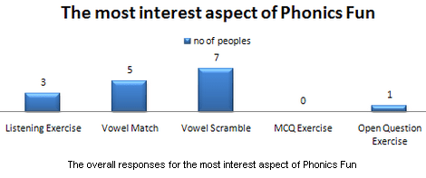According to the evaluation of users, they expected that the materials of PHONICS FUN to be richer. For example, if each e-book has their own main theme exercise, it makes the e-book seems more appealing.